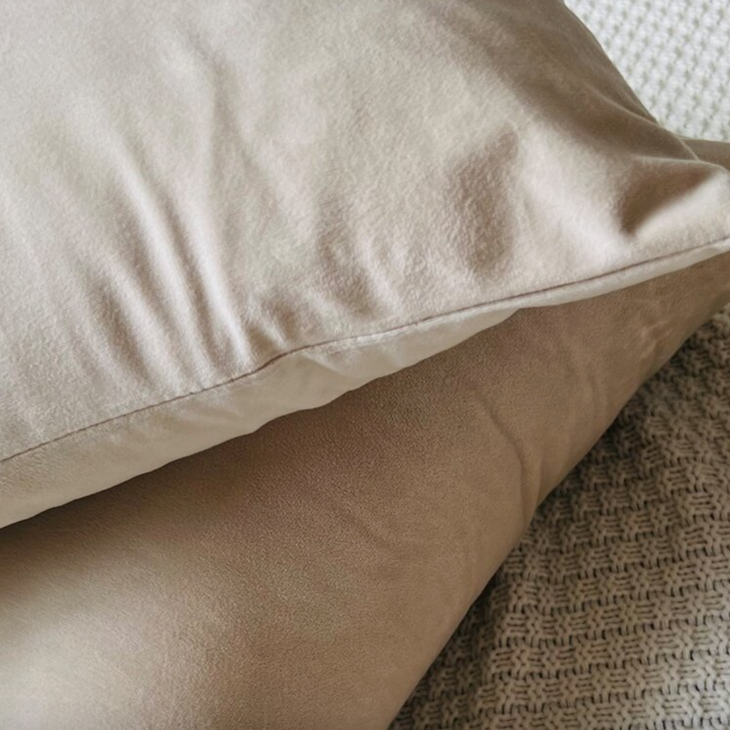 Housse de coussin en velours crème